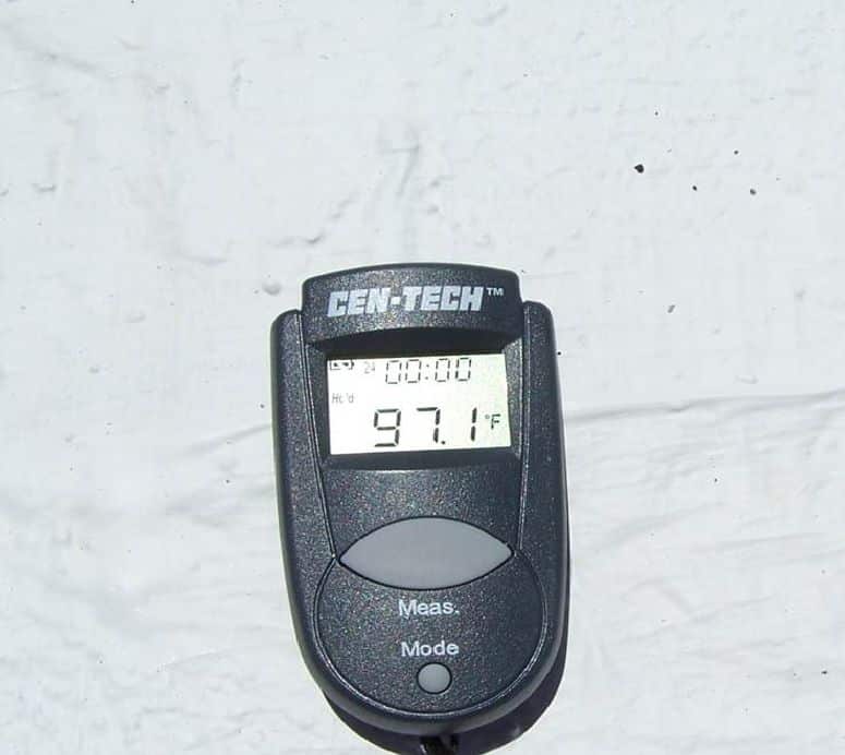 SureCoat Systems has conducted and documented actual BUR roof case studies that prove the ASTM testing showing 93% thermal emittance is accurate. SureCoat will reduce roof temperatures. On a day that had an ambient air temperature of approximately 88-90 degrees in the city of Fullerton this uncoated